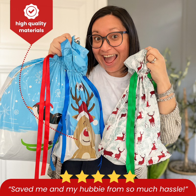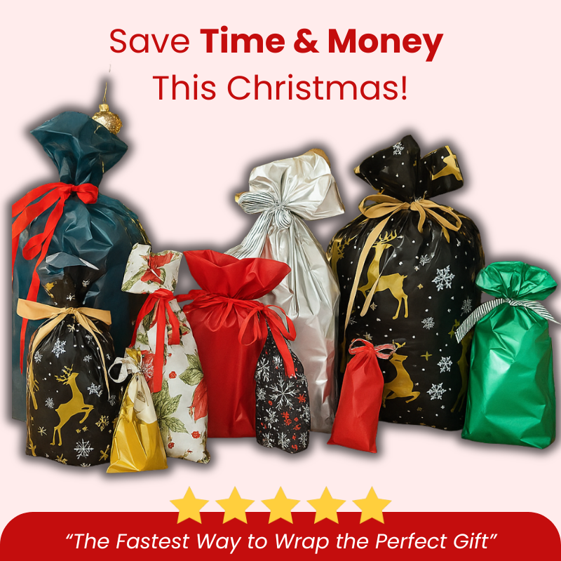 SnapWrap™ is a reusable drawstring gift bag that replaces traditional wrapping paper. Just pop your gift inside, pull the strings, and it’s wrapped — no scissors, tape, or mess required!